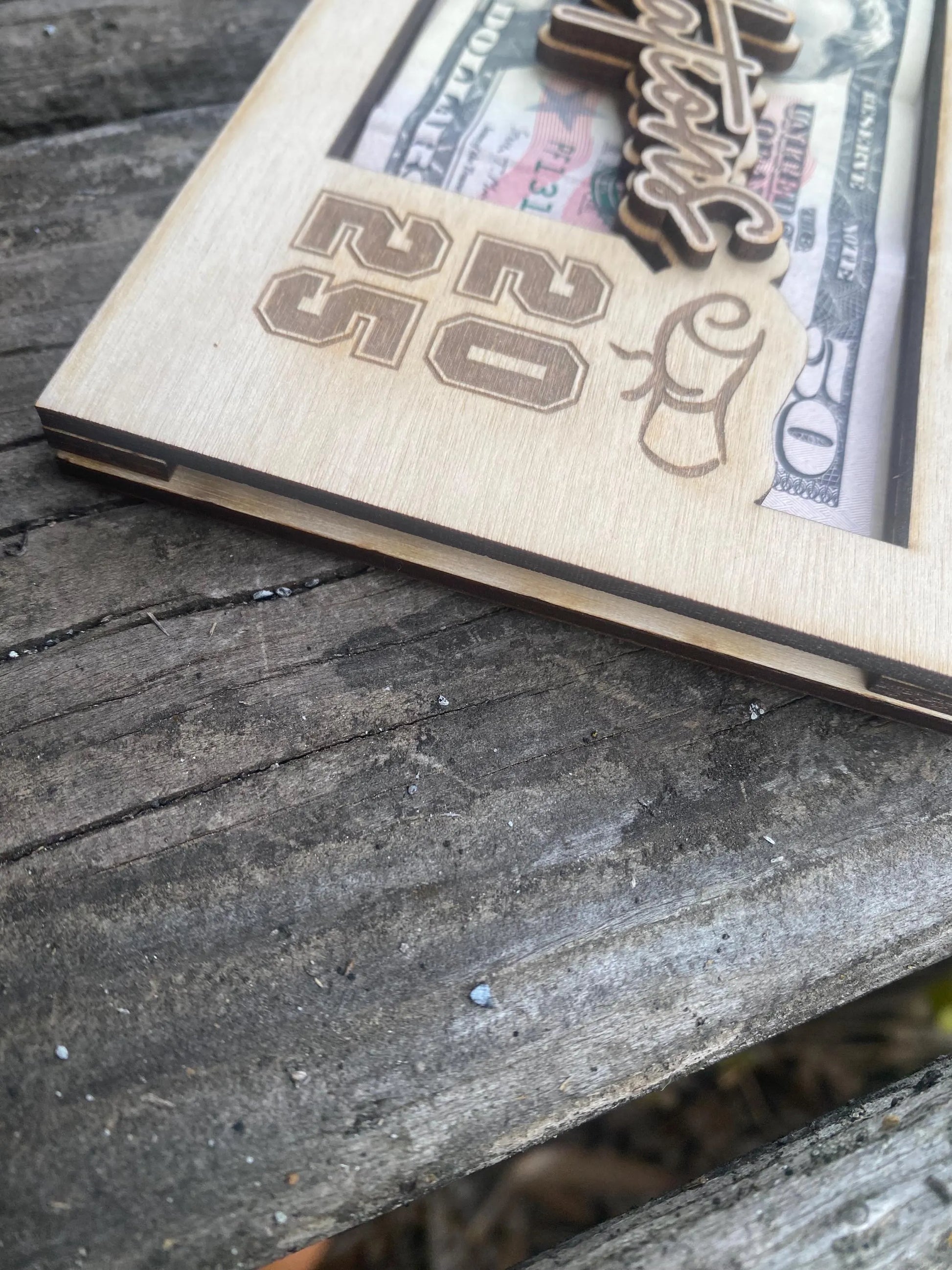 Personalized laser engraved money or gift card holder card for graduation 2025. If you want to include the ready made message let us know in the personalization.
