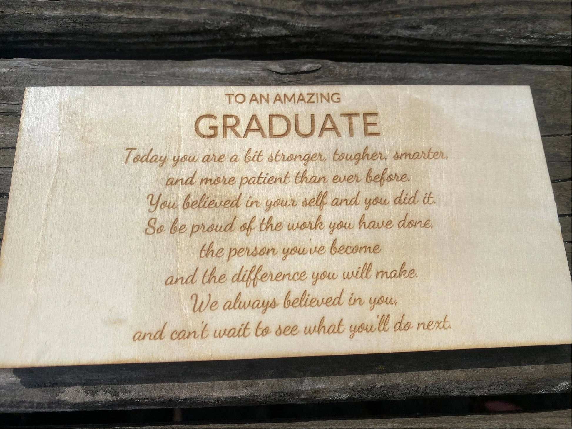 Celebrate their achievement with our elegant graduation money holder gift. This beautifully crafted keepsake not only holds their well-deserved cash but also serves as a symbolic token of success. Thoughtfully designed for the graduate in mind, it's a perfect blend of style and functionality, making it a cherished memento for this milestone moment. This money holder can hold up to 10 bills. This makes a very special gift for the graduates in your life!